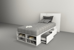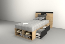 > Tiene 2 cajones de cada lateral para aprovechar el espacio de guardado y repisas en piecera